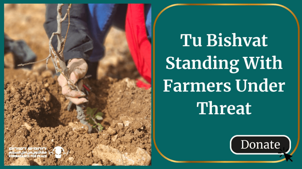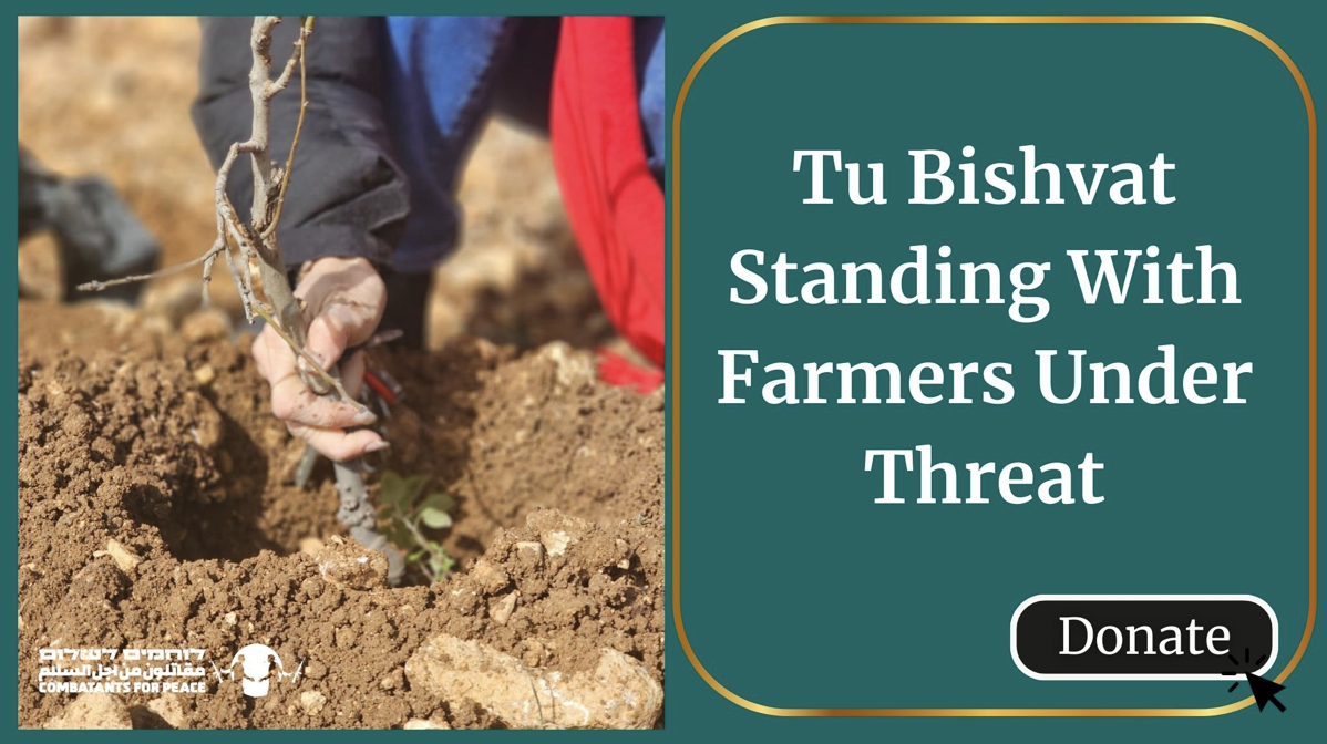 Tu Bishvat calls us to protect the people whose lives and dignity are tied to the land. Below, we share a message from Combatants for Peace (from Sunday) about their recent work standing with Palestinian farmers under threat, and an invitation to give in honor of the recent holiday:
