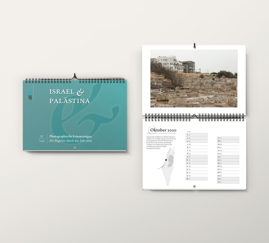Zum fünften Mal erscheint in israel & palästina | Zeitschrift für Dialog ein Bildbegleiter für das ganze Jahr. 2016 haben wir auf Andere Visionen geschaut. 2017 Erfahrungen aus der Arbeit der Combatants for Peace zum Thema genommen, 2018 waren es Visual Correspondences, zweier junger Frauen, 2019 waren alte Postkarten als Träger für die unterschiedlichen Narrationen zu sehen.
