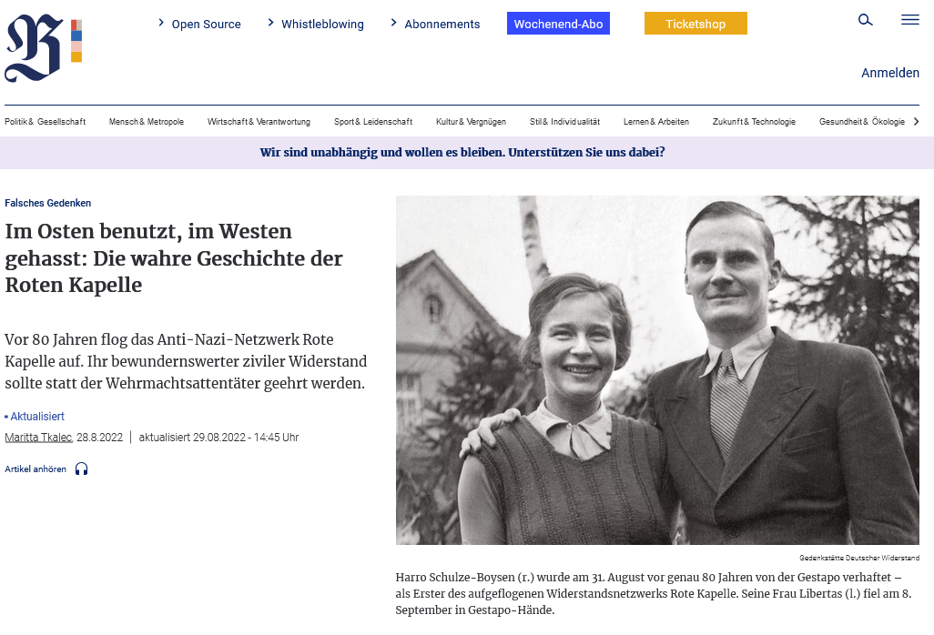 So unterschiedlich in „West“ und „Ost“ an die sog. „Rote Kapelle“ erinnert wurde – und wie ihrer heute gedacht wird – ein Spiegelbild deutscher Debatten …