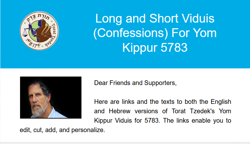 If some of the lines do not feel to you like they apply to Israeli society, please try to drop your defenses, and think again. If you still don’t think something applies, we again hope that the Torat Tzedek vidui will challenge you to create your own. Please feel free to download our vidui, then cut and paste and add and subtract to create your own personal/societal vidui. The point is to challenge you to engage in khesbon nefesh (soul searching), not to silence or intimidate. It is also possible to only recite a limited number of these texts, and concentrate on them. In many cases the first line is from the traditional viduis, and there are notes after the vidui explaining which traditional sources many of the concepts are taken from.