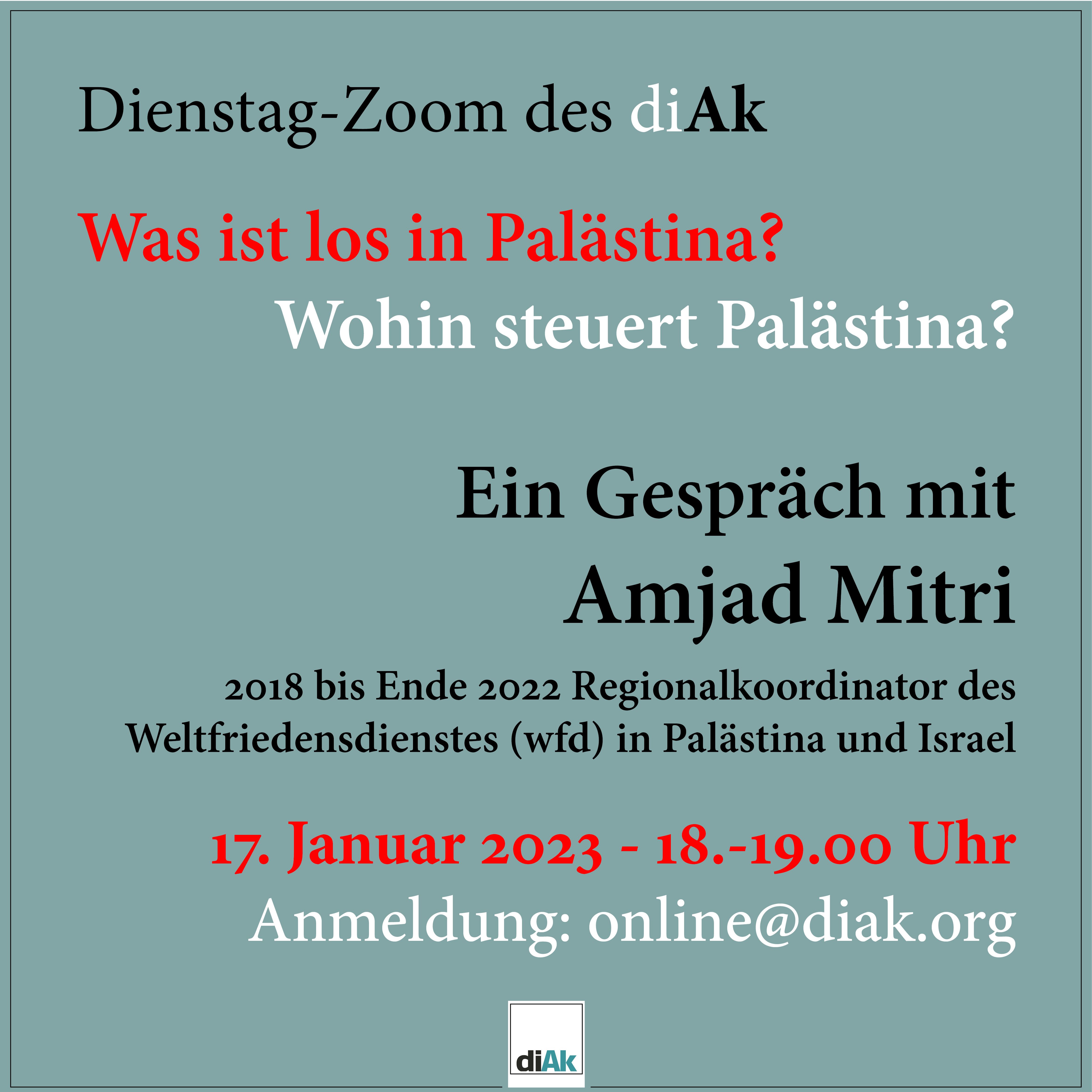 Wir schicken vor der Veranstaltung den Zoom-Link an diejenigen, die sich angemeldet haben: online@diAk.org
