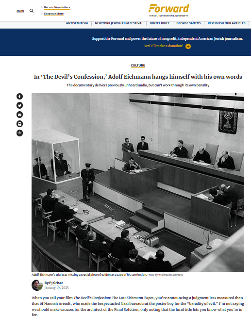 Ein Beitrag von PJ Grisar über den Dokumentarfilm von Yariv Mozer auf der Seite des Forward,