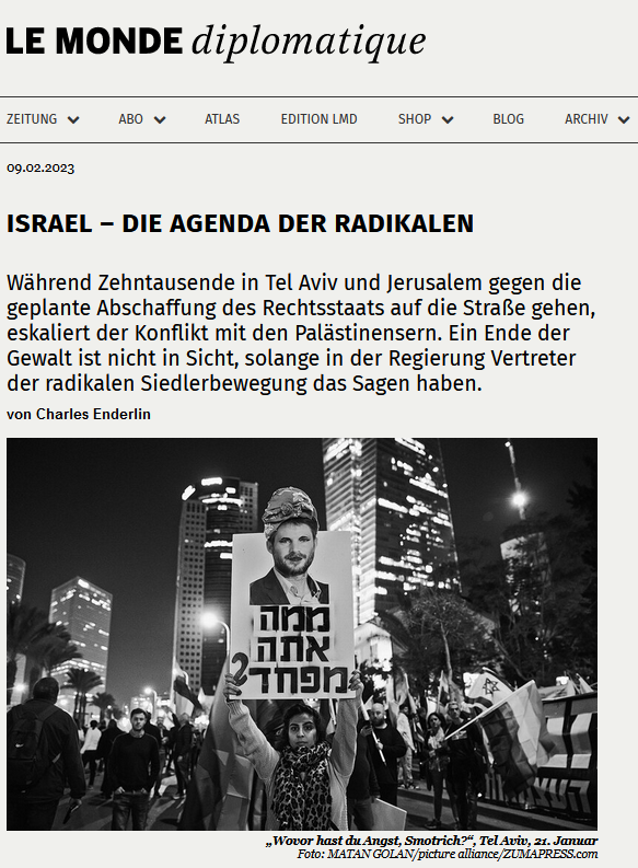 „Während Zehntausende in Tel Aviv und Jerusalem gegen die geplante Abschaffung des Rechtsstaats auf die Straße gehen, eskaliert der Konflikt mit den Palästinensern. Ein Ende der Gewalt ist nicht in Sicht, solange in der Regierung Vertreter der radikalen Siedlerbewegung das Sagen haben.“