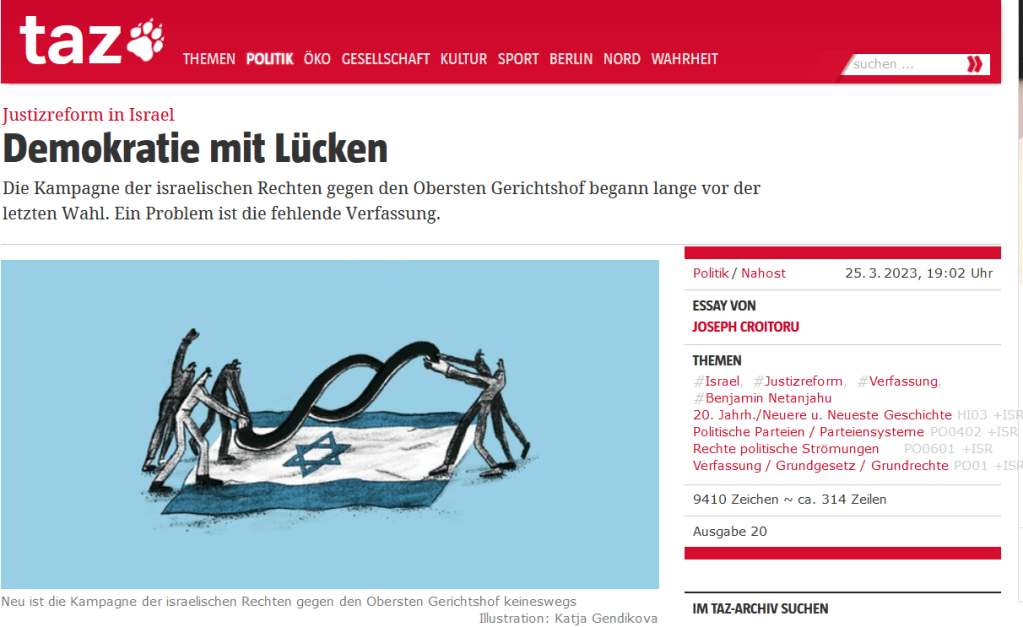 Joseph Croitoru schreibt in der taz über die Hintergründe und Geschichte der Auseinandersetzung um das Oberste Gericht in Israel