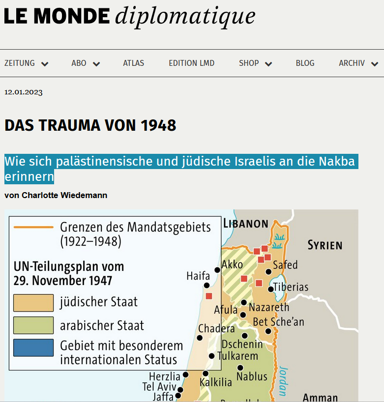 Charlotte Wiedemann beschreibt auf Le Monde Diplomatique, wie „sich palästinensische und jüdische Israelis an die Nakba erinnern“