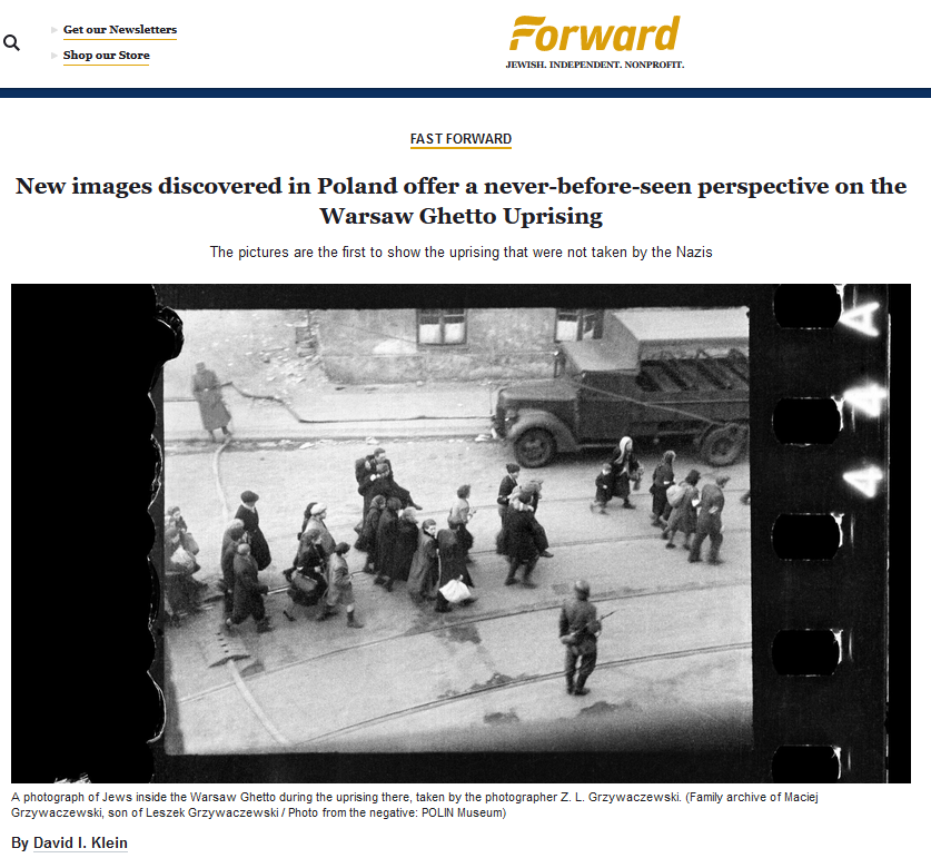 Ein Beitrag auf der Seite des Forward (vier Artikel können dort kostenlos eingesehen werden) berichtet über die aufgefunden Bilder, die Zbigniew Leszek Grzywaczewski, ein Warschauer Feuerwehrmann, gemacht hat.