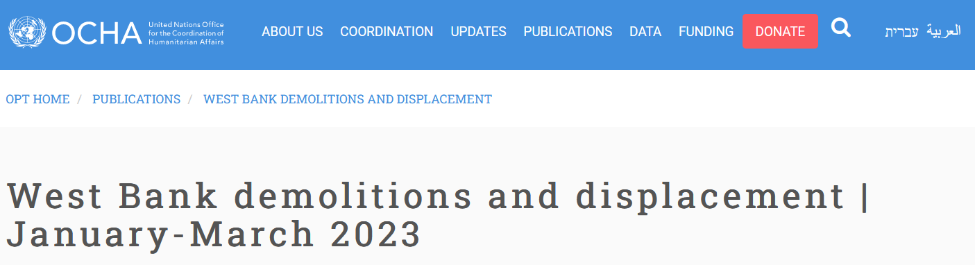 Die aktuelle Zusammenfassung der Entwicklungen (Bereich: Häuserzerstörungen und Vertreibungen) in den Palästinensischen Gebieten, so wie es das Büro der Vereinten Nationen regelmäßig beobachtet und dokumentiert (United Nations Office for the Coordination of Humanitarian Affairs in the occupied Palestinian territory [OCHA])
