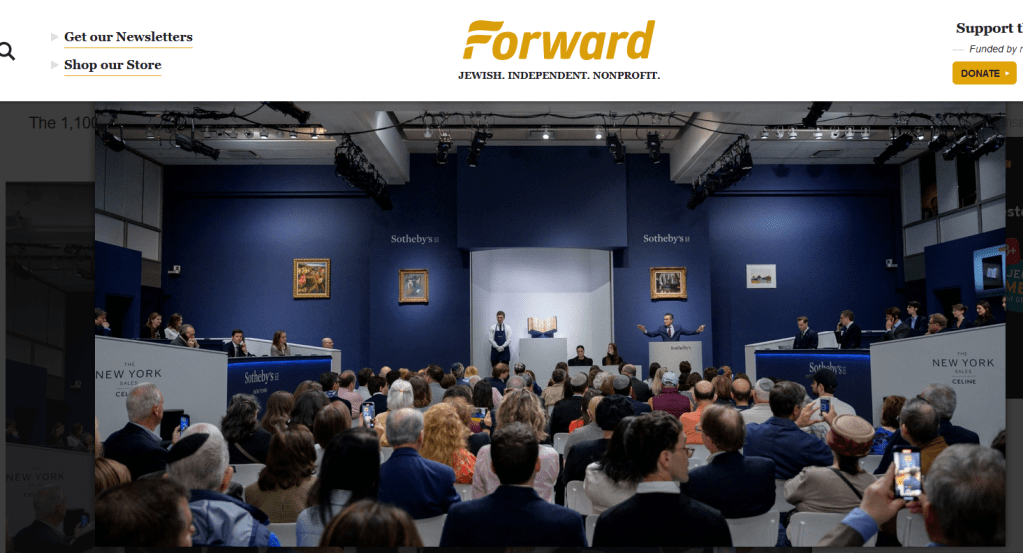 Bei Sotheby’s in New York City wurde der Codex Sassoon versteigert. Über einen Mäzen (Alfred Moses und Familie) wird er nach Tel Aviv ins Museum of the Jewish People (das eh. Diaspora-Museum) kommen.
