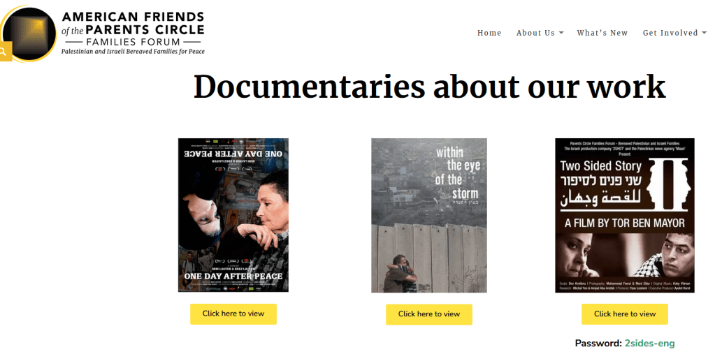 Hier der Hinweis etwa auf die Arbeit des Parents Circle – Families Forum (Paßwort unter den Bildern)
