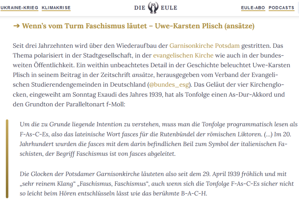 Hier der Screenshot, verwiesen wird auf die Zeitschrift Ansätze der ESG-Deutschland, der (noch?) nicht online verfügbar ist … entnommen dem Sonntags-Mailing vom online-Portal Die Eule, in der Selbstbeschreibung: „Nachrichten und Meinungen zu Kirche, Politik und Kultur, immer mit einem kritischen Blick aufgeschrieben für eine neue Generation„.