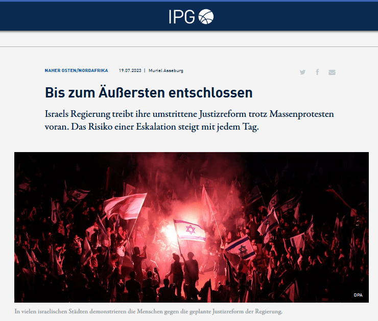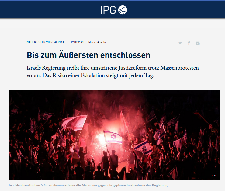 Wie weit könnte die Lage im Ringen Netanjahus um die Durchsetzung der „Justizreform trotz Massenprotesten“ eskalieren? Wie Muriel Asseburg im ipg-journal schreibt, geht es der gesellschaftlich breit aufgestellten Protestbewegung darum, „Israels politische und gesellschaftliche Ordnung zu bewahren, nicht sie zu verändern“. Das heißt aber auch: „Gelingt es dem Kabinett Netanjahu im Wege der Salamitaktik, die genannten Vorhaben zum Umbau der Justiz umzusetzen, werden die entscheidenden Mechanismen außer Kraft gesetzt, die bis dato zur Verfügung stehen, um im israelischen System rechtsstaatliches Handeln abzusichern. Damit wäre der Weg in eine illiberale Mehrheitsdemokratie ohne effektiven Minderheitenschutz vorgezeichnet.“