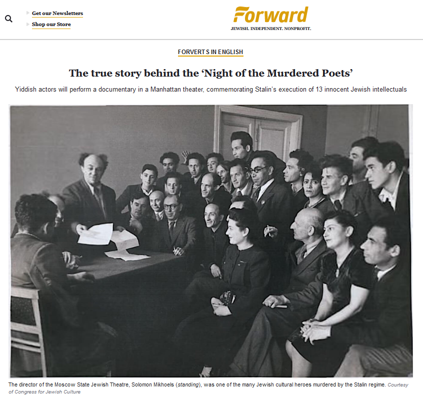 Rukhl Schaechter beleuchtet im US-amerikanisch-jiddischen Forward dieses Kapitel sowjetischer Verfolgung, wenige Monate bevor der Diktator nach einem Schlaganfall stirbt