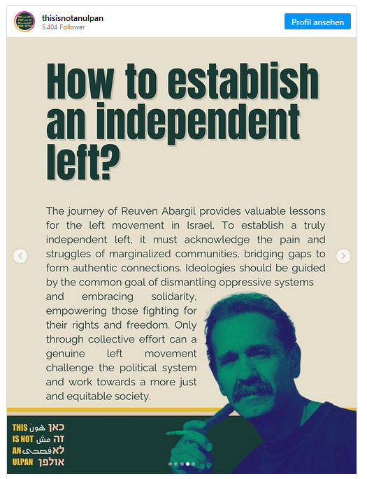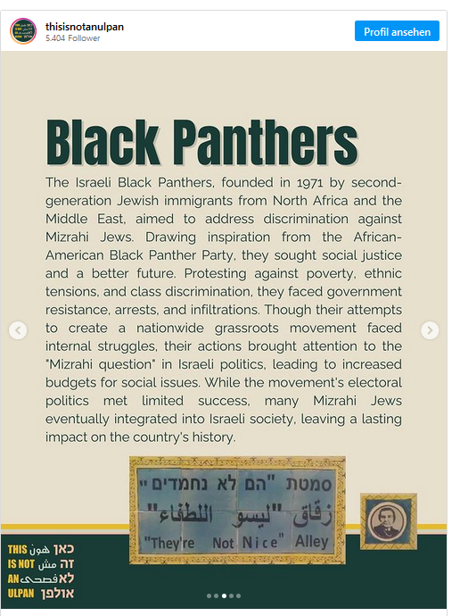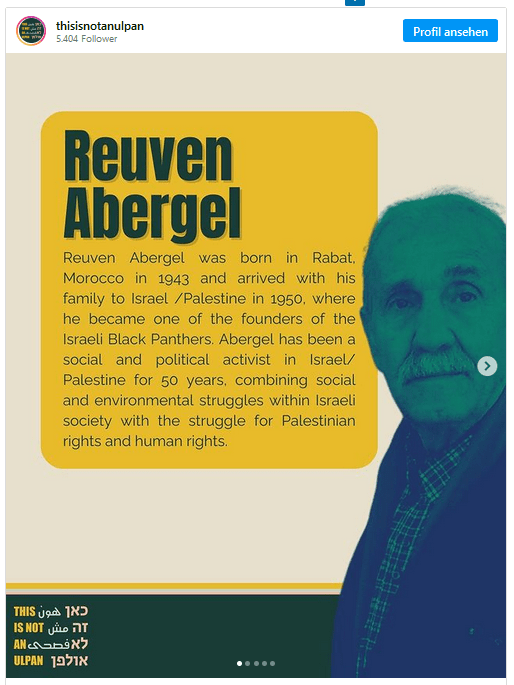 Reuven Abergel Veröffentlicht am August 12, 2023August 12, 2023Katgeorien Besatzung, Erinnerungsarbeit, Faschismus / Antifaschismus, Innenpolitik Israel, Kultur, Menschenrechte, Portrait Einer der Gründer der israelischen Black Panther, wird in diesem Jahr 80 Jahre alt – a.m.a.! – Es ist wichtig auch das, auch ihn zu erinnern! View this post on Instagram A post shared by This Is Not An Ulpan (@thisisnotanulpan) Entdecke mehr von Melde dich für ein Abonnement an, um die neuesten Beiträge per E-Mail zu erhalten. Gib deine E-Mail-Adresse ein ... Abonnieren Teilen mit: Klicken, um auf WhatsApp zu teilen (Wird in neuem Fenster geöffnet) WhatsApp Klick, um auf Pinterest zu teilen (Wird in neuem Fenster geöffnet) Pinterest Klicken, um auf Telegram zu teilen (Wird in neuem Fenster geöffnet) Telegram Klick, um auf Facebook zu teilen (Wird in neuem Fenster geöffnet) Facebook Gefällt mir Wird geladen …