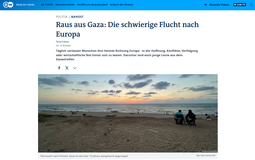Täglich verlassen Menschen ihre Heimat Richtung Europa – in der Hoffnung, Konflikte, Verfolgung oder wirtschaftliche Not hinter sich zu lassen. Darunter sind auch junge Leute aus dem Gazastreifen.