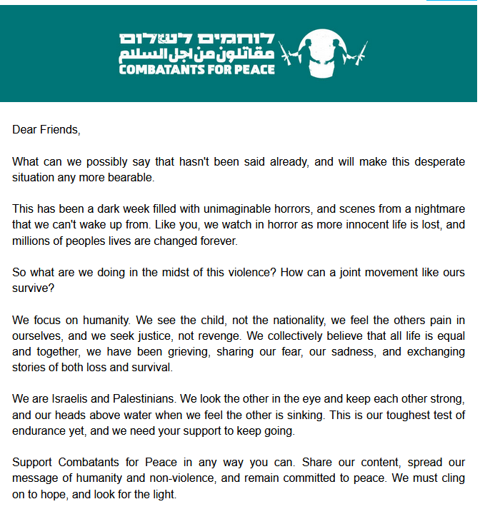 Aus Deutschland, aus der Nachbarschaft, in der ich mit meinen Kindern einst gewohnt habe, kommen nun Bilder jubelnder Palästinenser. Das Schweigen fast aller palästinensischer Freundinnen und Freunde, Weggefährten im Kampf für Menschenrechte, mit wenigen, kostbaren Ausnahmen hier in Israel, betäubt die Ohren. Es befleckt den gerechten palästinensischen Kampf um eigene Staatlichkeit mit endloser Schande.