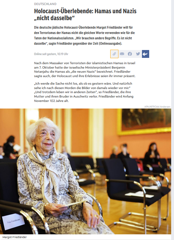 Auf der Seite des ORF kommt Margot Friedländer zu Wort, ein Beitrag, der auf einem Bericht in der Wochenzeitung DIE ZEIT basiert: