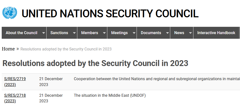 Nachtrag, 28. Dezember 2023 – Link zuim Text im UN-System