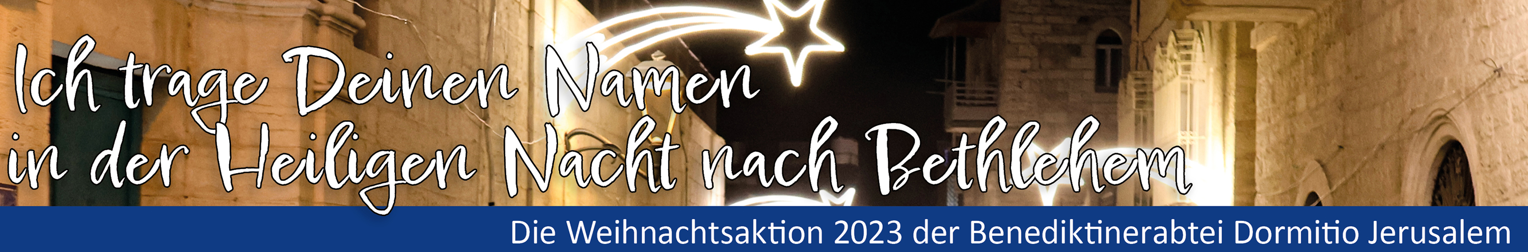 Seit Jahren tragen die deutschen Benediktiner auf dem Zion (Dormitio), die Namen, die sie zuvor (bis zum Freitag, 22. Dezember) übermmittelt bekommen haben „symbolisch“ und analog in der Heiligen Nacht hinüber zur Krippe …