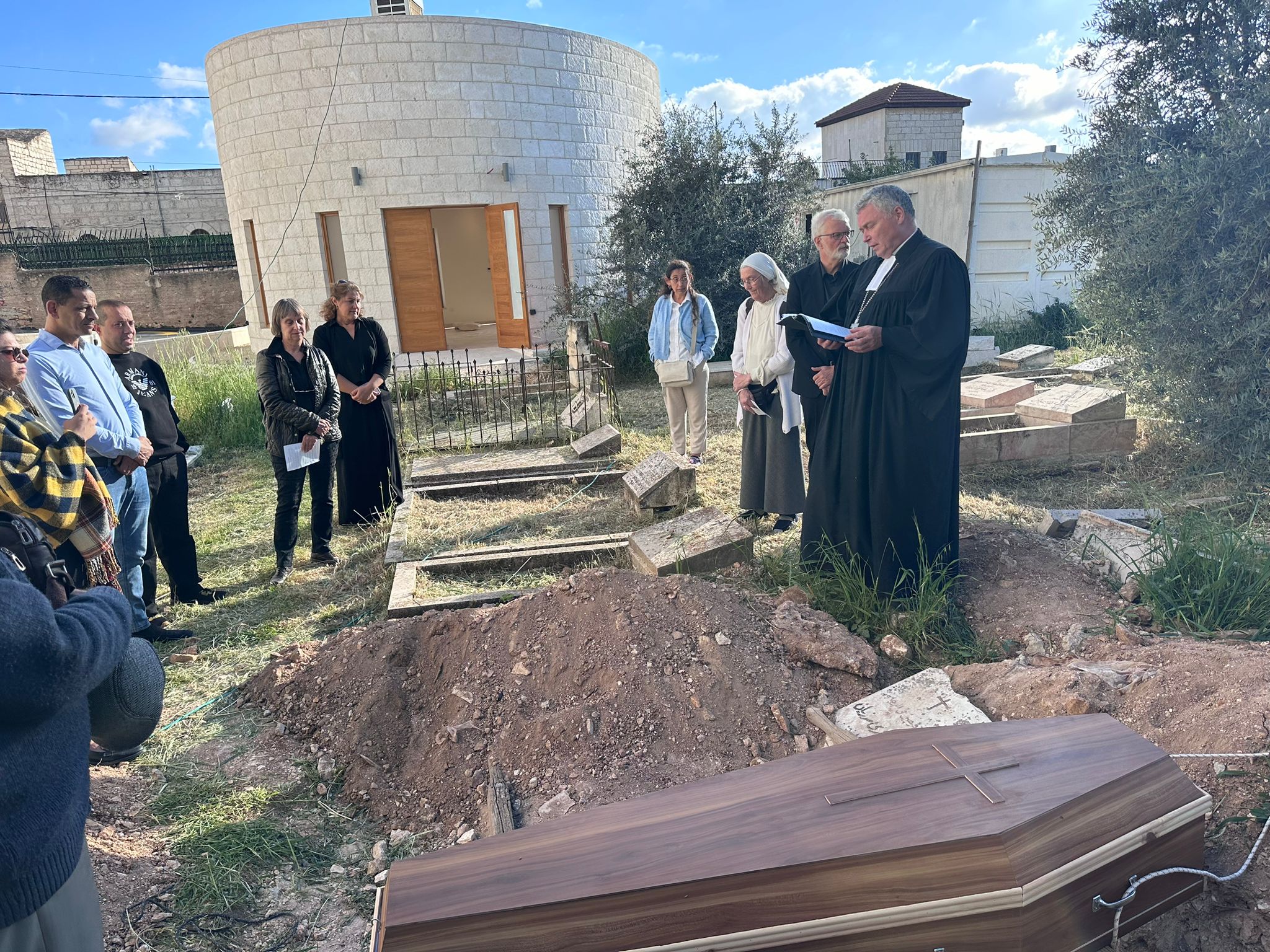 Am Samstag. 6. April 2024 wurde sie „zu Füßen“ des ersten Bischofs der lutherischen Kirche Haddad und mit Blick auf Gilo und Beit Jala ins Grab gelegt.