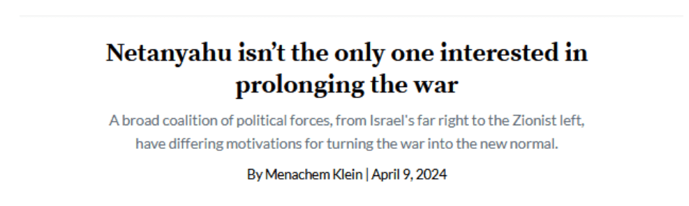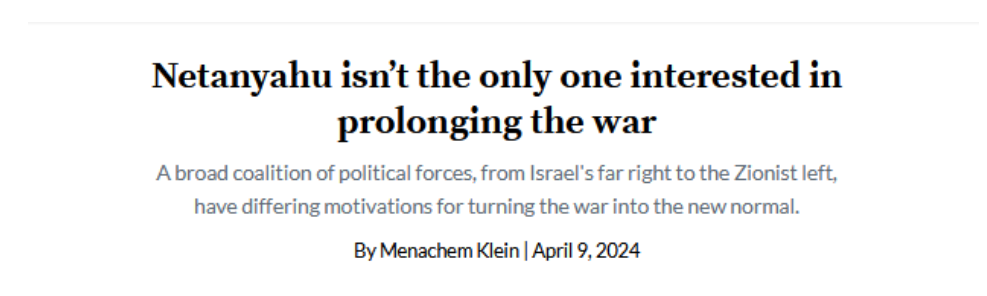 Menachem Klein, Professor of Political Science an der Bar Ilan Universität, seinerzeit Berater der israelischen Delegation in den Verhandlungen mit der PLO im Jahr 2000, einer der führenden Köpfe der Genfer Initiative, schreibt auf der Plattform +972: Netanyahu ist nicht der Einzige, der daran interessiert ist, den Krieg zu verlängern ….