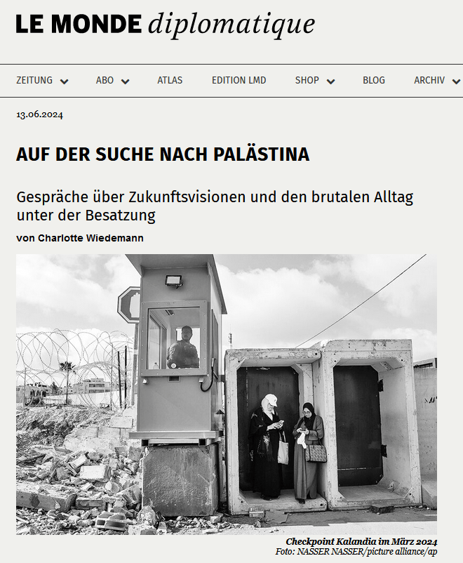 In Le Monde Diplomatique begibt sich Charlotte Wiedemann auf die Suche, auf die Suche nach Einem Land für alle, nach Lebensrealitäten und Erinnerungen, nach inklusiven Narrationen, nach wechselseitigem Respekt für die Traumata, die auf beiden Seiten so prägend sind: Shoa und Nakba – das war schon vor dem 7. Oktober und diesem Gaza-Krieg schwierig, jetzt erst recht und doch noch nötiger als je.