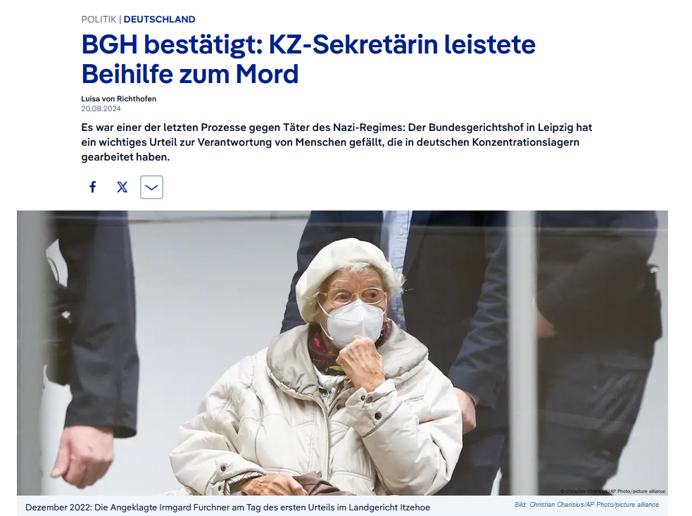 BGH bestätigt: KZ-Sekretärin leistete Beihilfe zum Mord