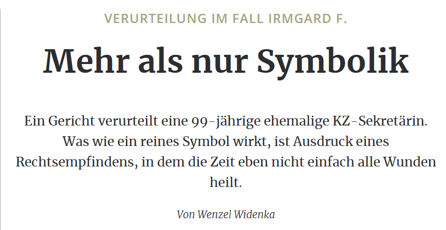 „Dass Gerechtigkeit für Millionen Ermordete nicht wiederhergestellt werden kann, ist allen Beteiligten klar. Aber das ist kein Grund, nicht nach ihr zu streben. Es geht auch nicht darum, dass die Opfer und deren Nachkommen nun den Tätern verzeihen sollen oder können. Dazu kann sie niemand zwingen. Es ist der Versuch, wenigstens das immer noch Mögliche zu tun, damit die Opfer und ihre Nachkommen etwas von den Bildern in der Nacht entlastet werden.“