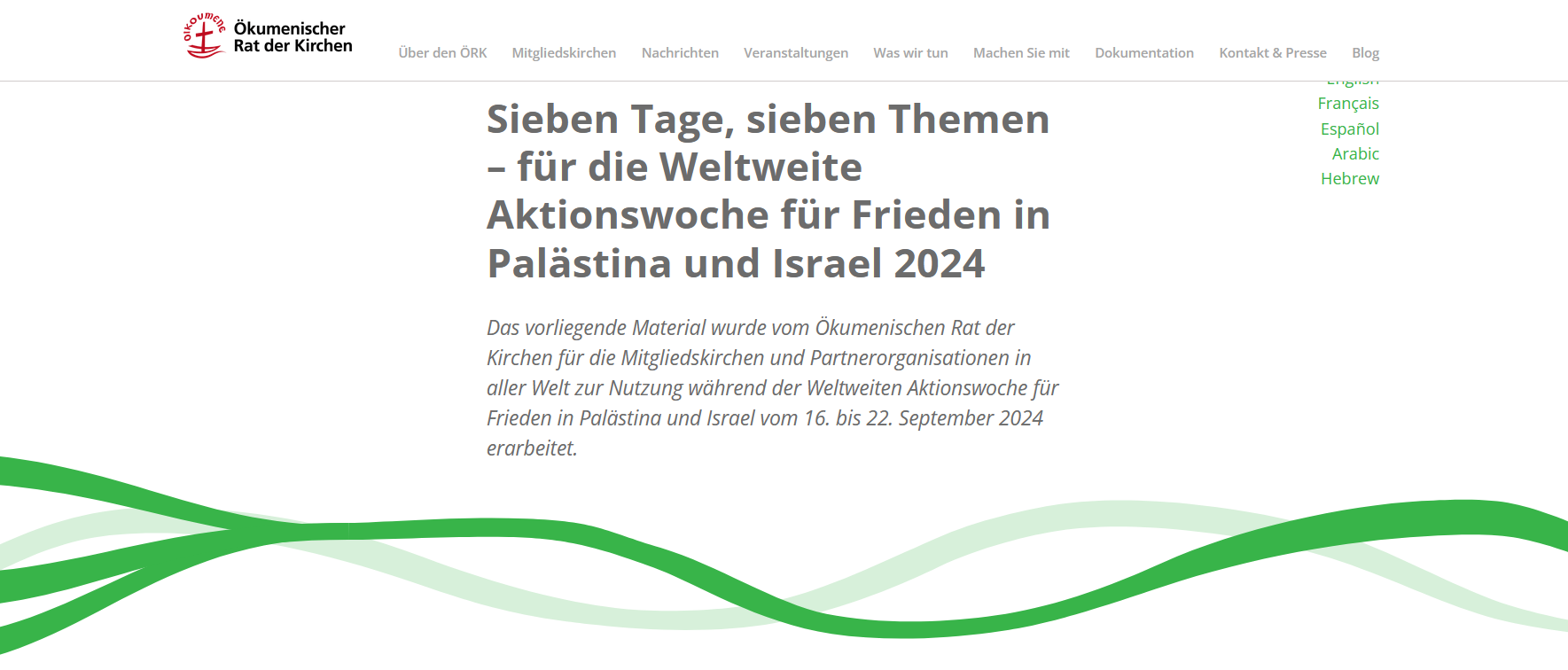 Für die Weltwoche für Frieden in Palästina und Israel vom 16. bis 22. September 2024 hat der Ökumenische Rat der Kirchen (ÖRK) neue Materialien veröffentlicht. In dieser Woche findet am 21. September auch der Weltfriedenstag der Vereinten Nationen statt, der zum 25. Mal begangen wird.