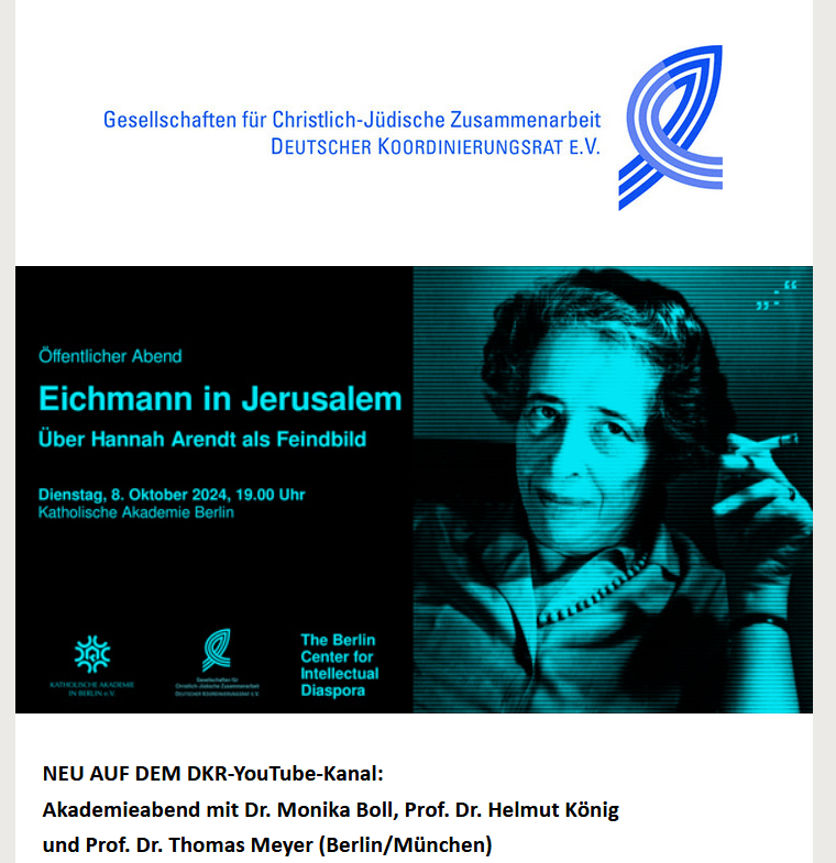 Auf dem Youtub-Kanal des Deutschen Koordinierungsrats der Gesellschaften für christlich-jüdische Zusammenarbeit findet sich jetzt der Mitschnitt eines Akademieabends mit Dr. Monika Boll, Prof. Dr. Helmut König und Prof. Dr. Thomas Meyer (Berlin/München)