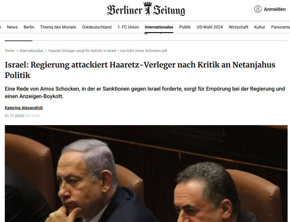 Ende Oktober der Bericht in der Berliner Zeitung von Katerina Alexandridi über den Vortrag von Amos Schocken in London: