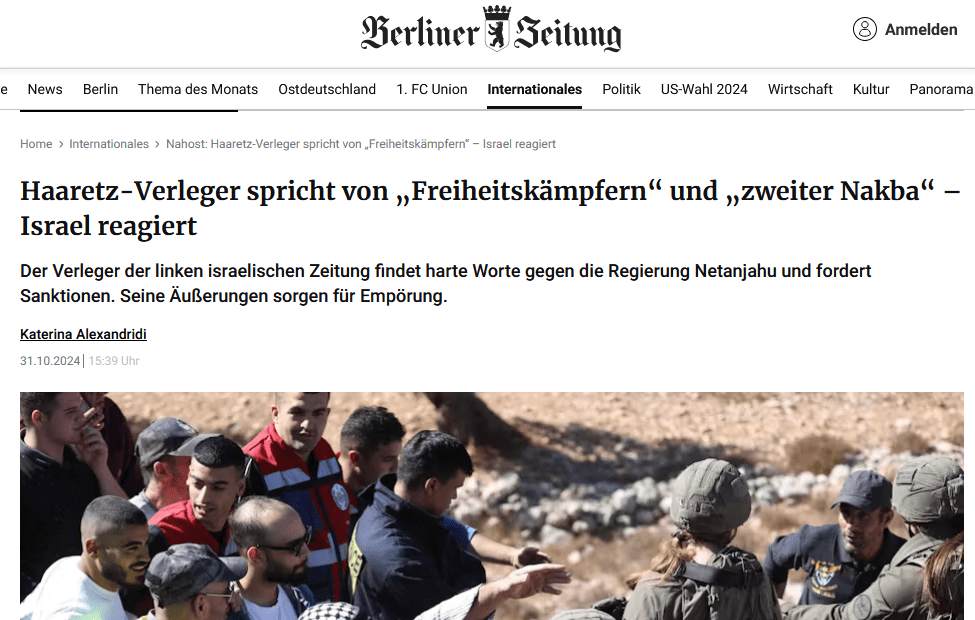 Hier der Ausriß aus der Berliner Zeitung mit dem Artikel von Katerina Alexandridi über die darauf folgende Auseinandersetzung in Israel: