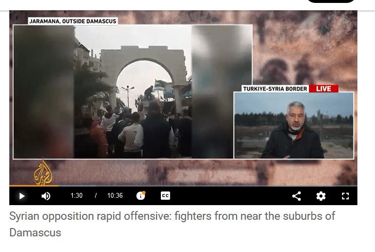 Aljazeera etwa (im Liveblog (So. 8.12./16:00) zeigt den Sturz von Assad-Standbildern ….