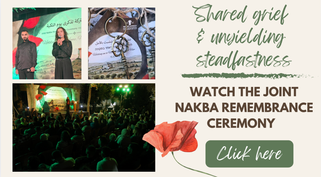 Palestinians, Israelis, and allies from around the world gathered on May 15, for the 2025 Joint Nakba Remembrance Ceremony – to commemorate the forced displacement and dispossession of the Palestinian people, to acknowledge that the current bloodshed is a horrifying link in the long chain of conflict and violence over the land, and to insist on another way. Through the ceremony, Combatants for Peace modeled what they affirm – that understanding how each side experiences history is imperative to breaking this chain and forging a different future.