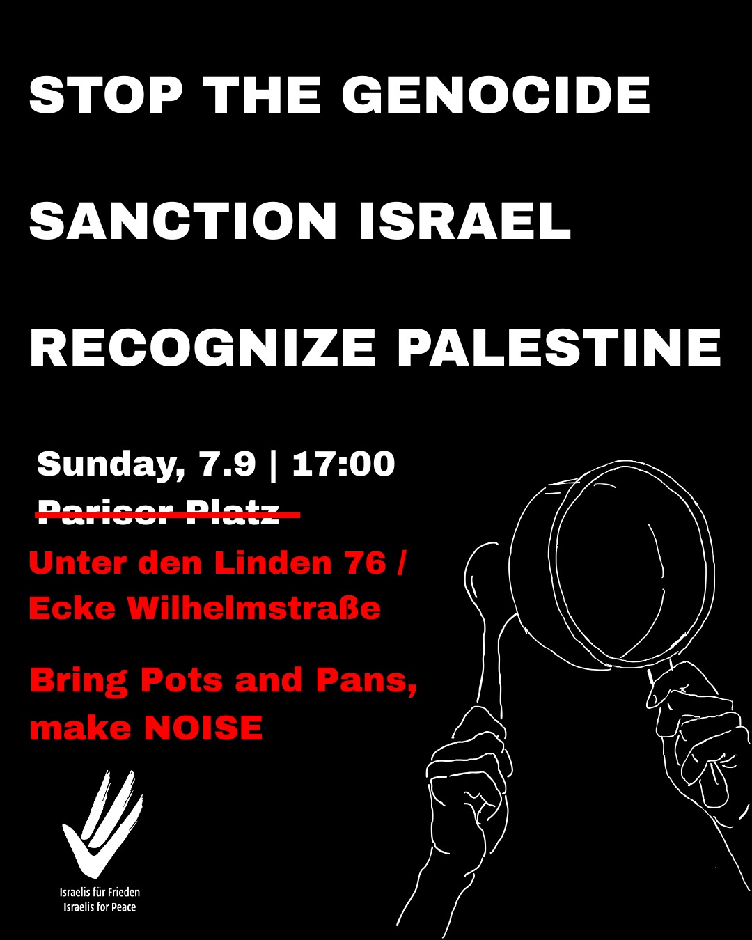 We, Israelis living in Germany, call upon the German government to intensify pressure on the extremist Israeli government, which is committing genocide.