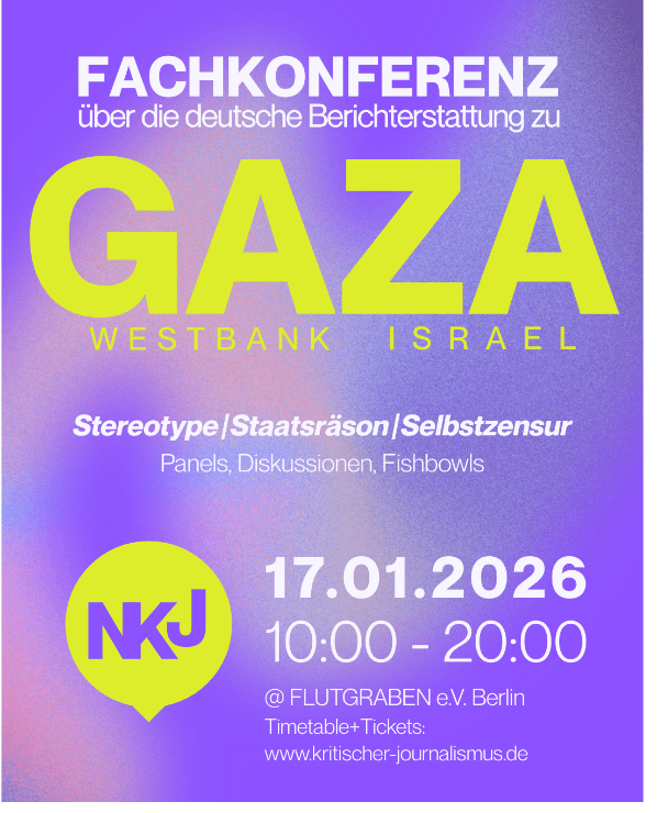 Bereits lange vor dem 7. Oktober 2023 lässt sich beobachten, daß die Berichterstattung in Deutschland, im Vergleich zur internationalen Medienlandschaft, häufig verengt bleibt. Zugleich stehen Korrespondent:innen unter wachsendem Erwartungs- und Rechtfertigungsdruck. Besonders betroffen sind freie Journalist:innen sowie Kolleginnen mit arabischer, muslimischer oder palästinensischer Biographie, die bei kritischen Einordnungen der Berichterstattung häufig keine institutionelle Rückendeckung erfahren und sich innerhalb des Berufsstands zunehmend marginalisiert fühlen. Vor diesem Hintergrund veranstaltet das neu gegründete NETZWERK KRITISCHER JOURNALISMUS am 17. Januar 2026 in Berlin eine ganztägige Konferenz zur kritischen Reflexion der deutschen Medienberichterstattung zum Gaza-Krieg und der umliegenden Region. Die Initiative reagiert damit auf ein zunehmend repressives Klima in deutschen Redaktionen. In Panels, Vorträgen und Fishbowl-Formaten widmet sich die Konferenz der Frage, welche journalistischen Standards in der aktuellen Berichterstattung unter Druck geraten, wie der Diskurs in Deutschland strukturiert ist und welche Rolle Medien, politische Rahmungen und die Berlin, 19. Dezember 2026 deutsche Staatsräson dabei spielen. Darüber hinaus wird diskutiert, wie Journalist:innen Handlungsspielräume zurückgewinnen, sich besser vernetzen und den öffentlichen Diskurs aktiv mitgestalten können.