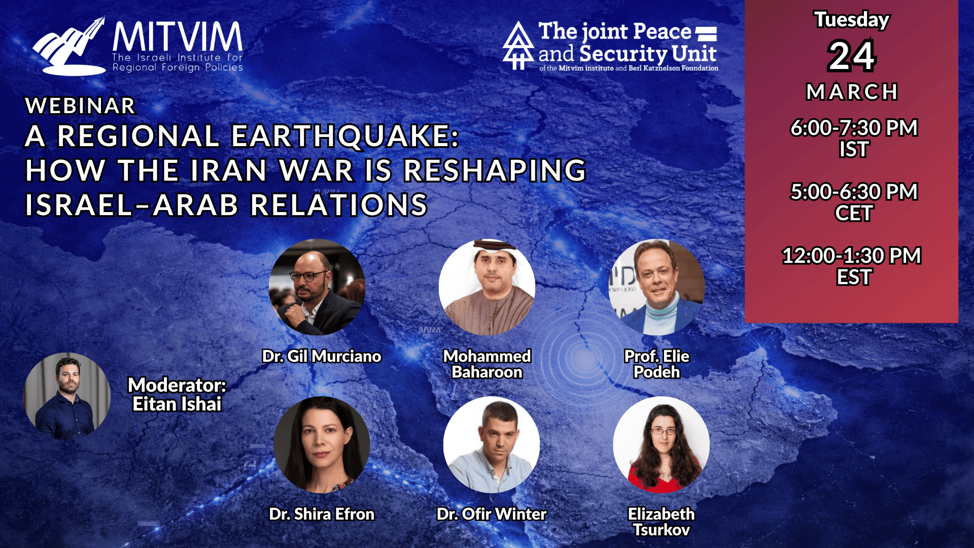 This webinar will examine the future of relations between Israel and regional actors in light of the latest developments in the Middle East. The discussion will explore the opportunities and limitations of an approach based primarily on power and deterrence, alongside the role of political processes, regional diplomacy, and multilateral cooperation in shaping a more stable regional order.