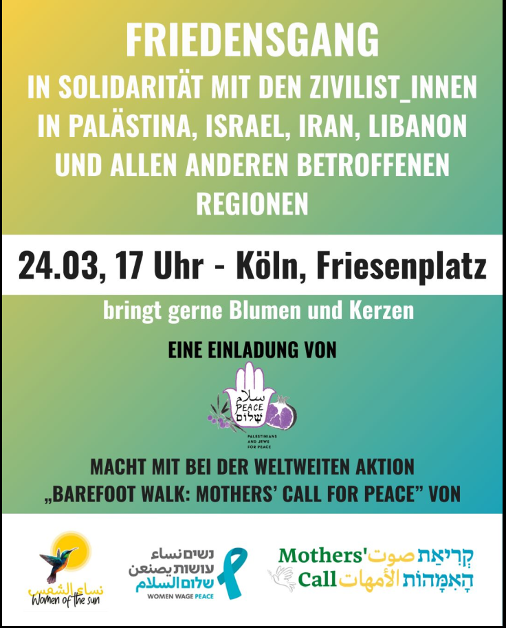 Rehumanize! Veröffentlicht am März 23, 2026März 23, 2026Katgeorien Deutschland-Israel-Palästina, Erinnerungsarbeit, Friedens- und Versöhnungsarbeit, Israel und Palästina Palestinians and Jews for Peace Entdecke mehr von Melde dich für ein Abonnement an, um die neuesten Beiträge per E-Mail zu erhalten. Gib deine E-Mail-Adresse ein ... Abonnieren Teilen mit: Auf WhatsApp teilen (Wird in neuem Fenster geöffnet) WhatsApp Auf Pinterest teilen (Wird in neuem Fenster geöffnet) Pinterest Auf Telegram teilen (Wird in neuem Fenster geöffnet) Telegram Auf Facebook teilen (Wird in neuem Fenster geöffnet) Facebook Gefällt mir Wird geladen …
