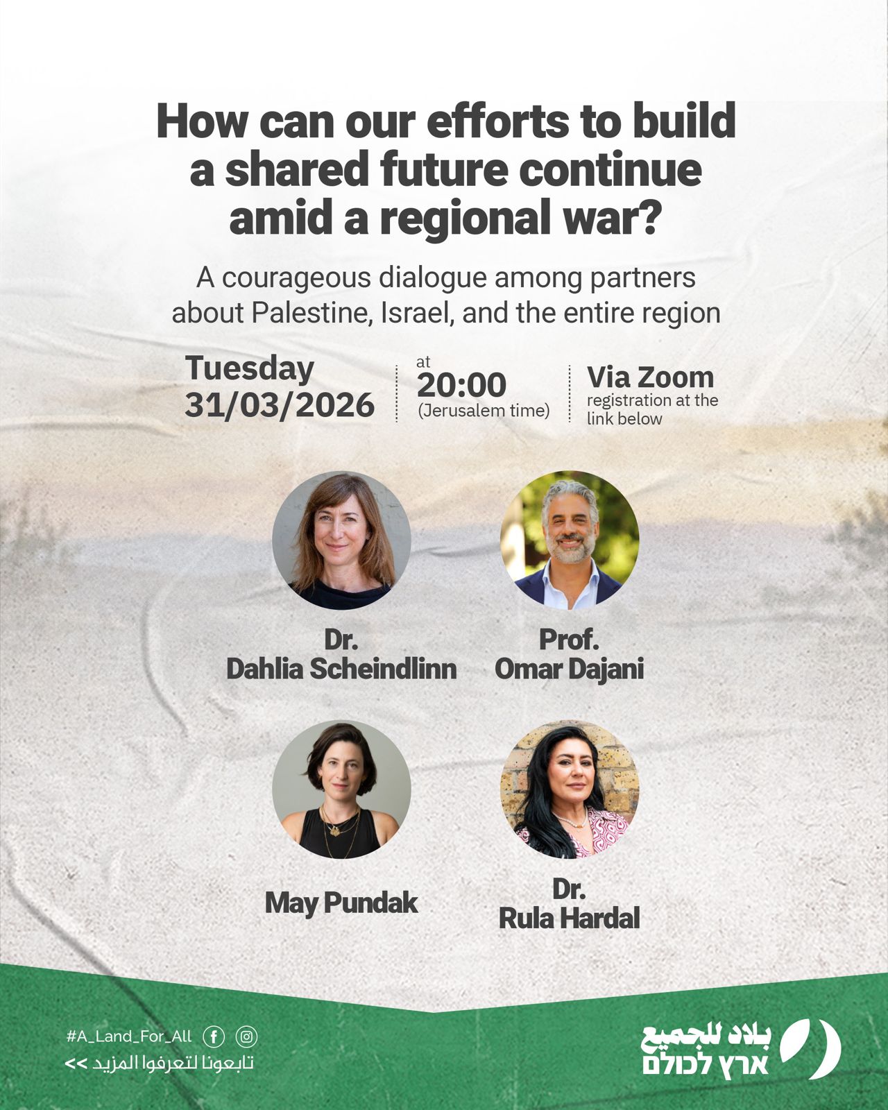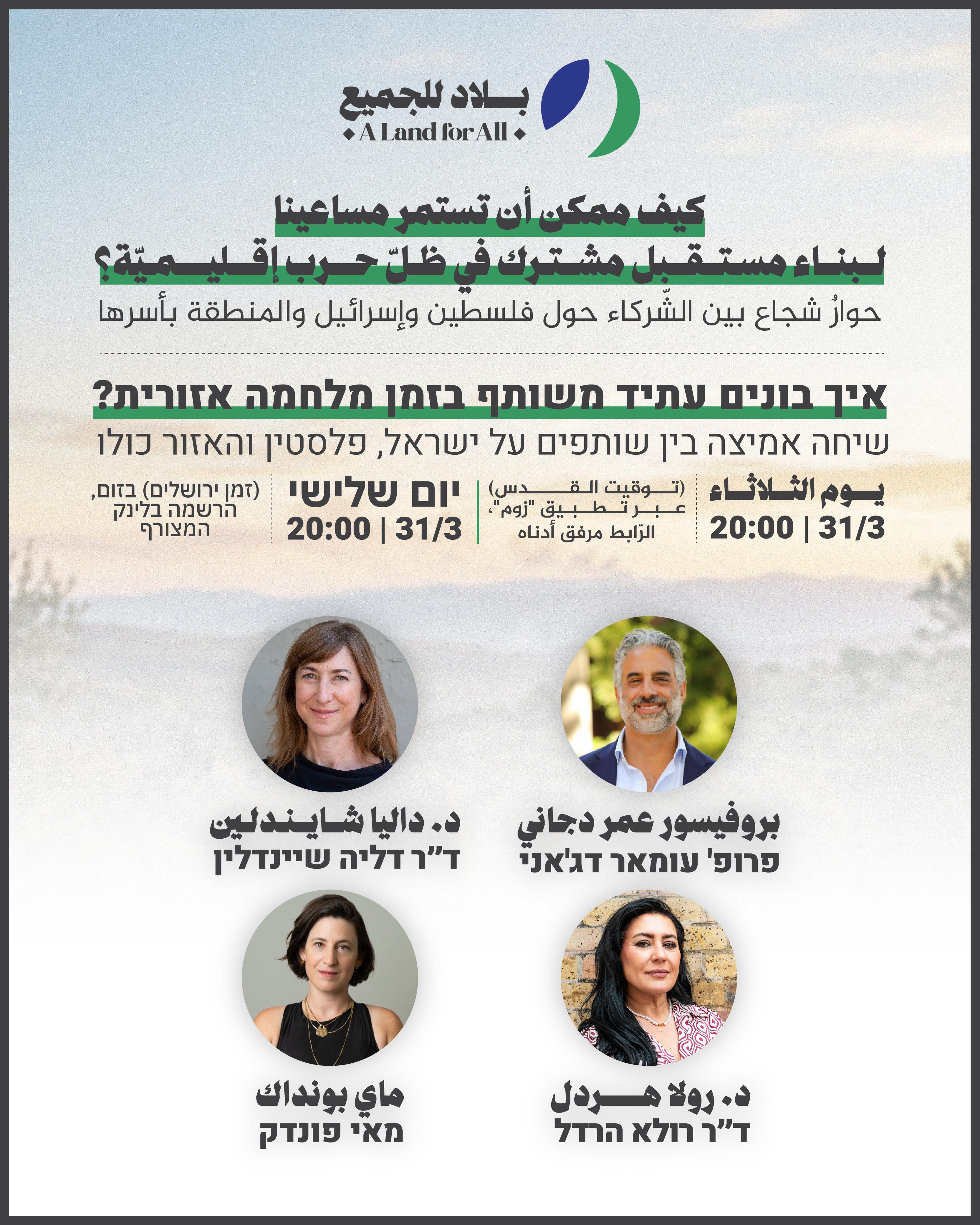 Moderated by – May Pundak, Israeli co-CEO of A Land for All