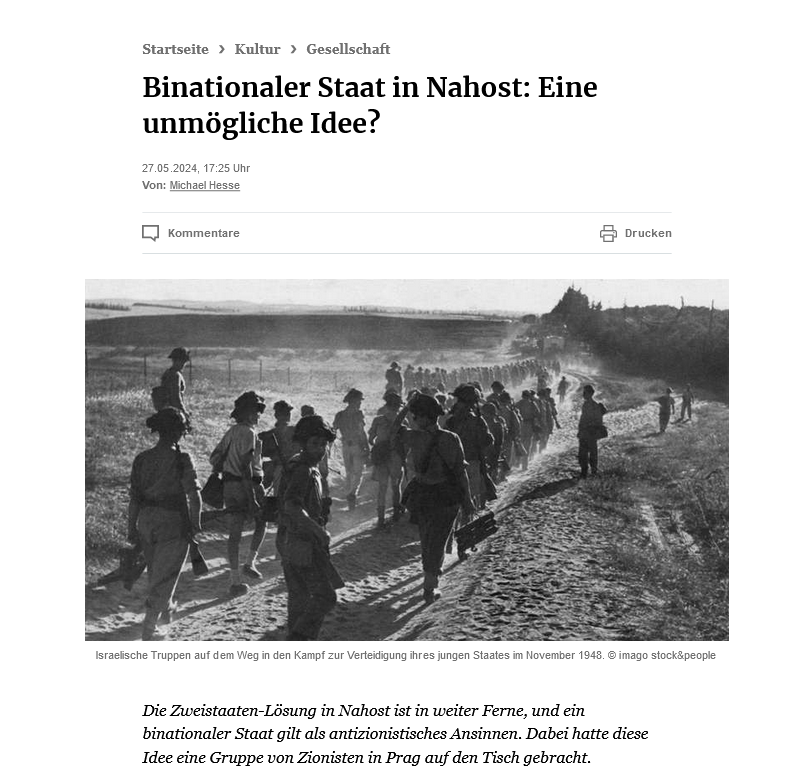 Michael Hesse schreibt in der Frankfurter Rundschau unter dem Titel: Binationaler Staat in Nahost: Eine unmögliche Idee? eine Annäherung an die Überlegungen von Omri Boehm und geht dabei auch noch einmal auf den Brit Shalom, besonders auf den Kreis des ‚Prager Zionismus‘ ein – lesenswert und heute umso mehr bedenkenswert, was einmal alles „denkbar“ war …