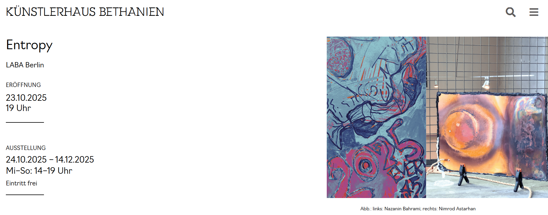 Der konzeptuelle Rahmen des diesjährigen LABA-Stipendienprogramms ist Entropie. Jede Woche trafen sich jüdische und muslimische Künstler*innen im Künstlerhaus Bethanien, um Entropie aus wissenschaftlicher, theologischer und philosophischer Perspektive zu erforschen und, begleitet von Vertreter*innen beider Konfessionen, in Beziehung zu ihrer künstlerischen Praxis zu setzen.