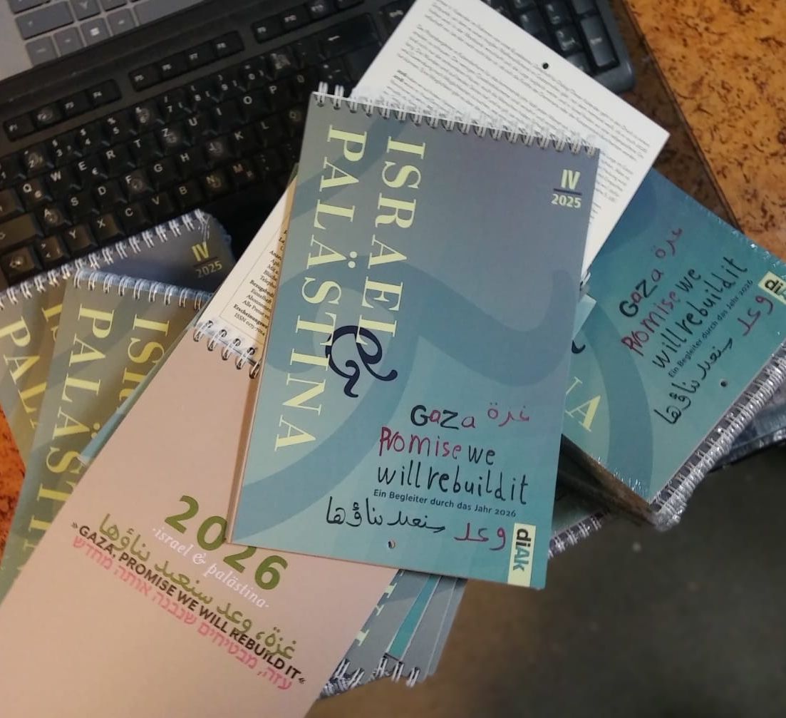 Frisch aus der Druckerei ist der Kalender 2026 eingetroffen – Thema Gaza – Ein Begleiter durch das Jahr 2026Gaza – Promise, we will rebuild it – Bestellbar im Shop