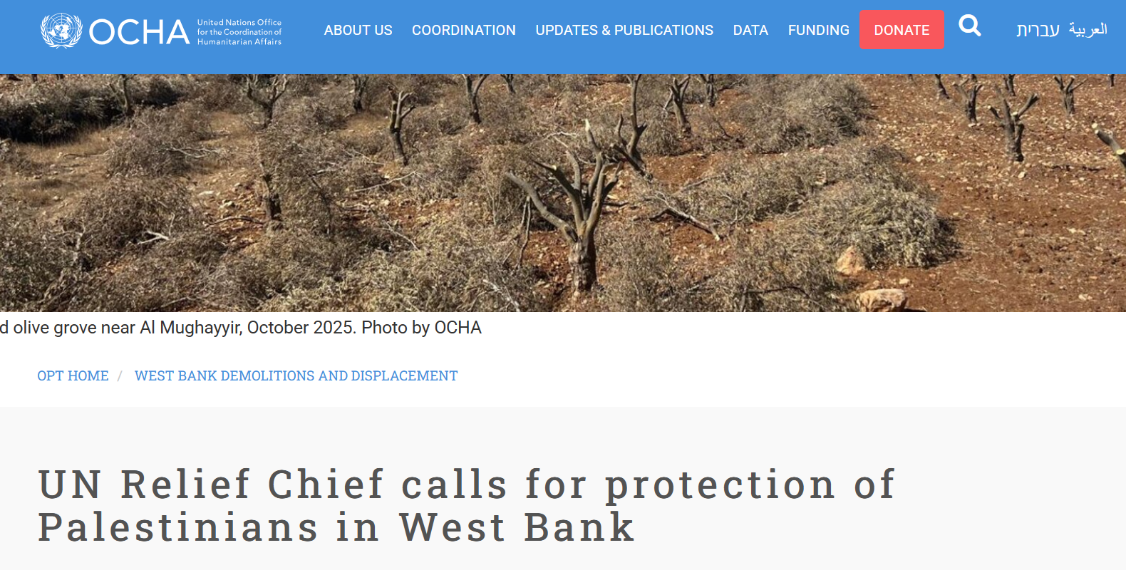 Statement on the West Bank by Tom Fletcher, Under-Secretary-General for Humanitarian Affairs and Emergency Relief Coordinator (New York, 4. November 2025)