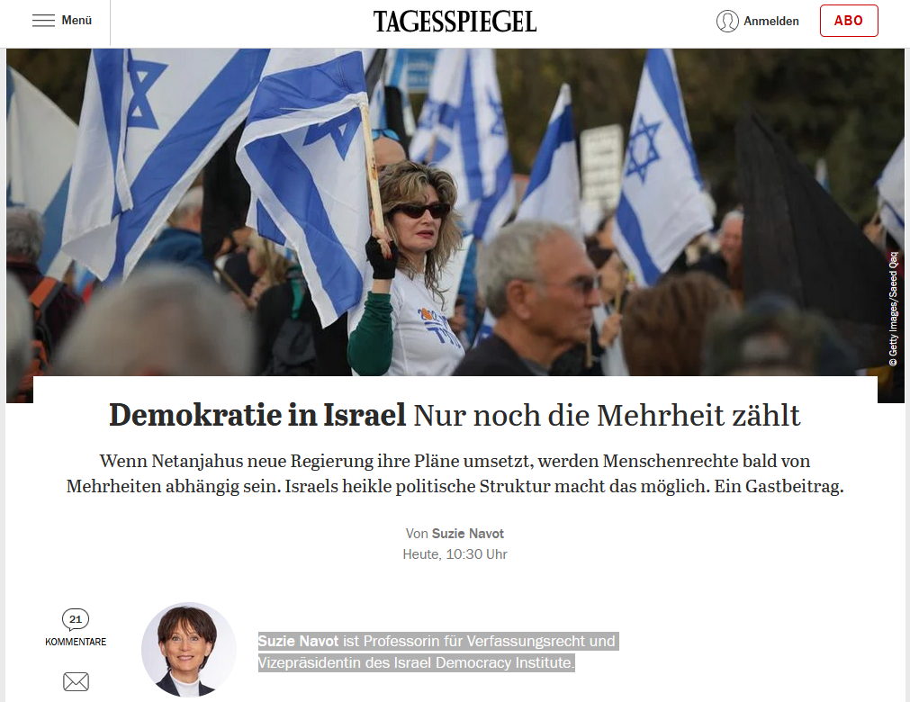 Der bekannte israelische Schriftsteller David Grossmann sieht angesichts solcher Perspektiven kaum eine Zukunft für das bisher existierende Israel, vielmehr ein politisches, moralisches und soziales Chaos, in das die Demokratie in Israel versinkt. – Dazu sein Beitrag in der Haaretz vom 28. Dezember 2022.